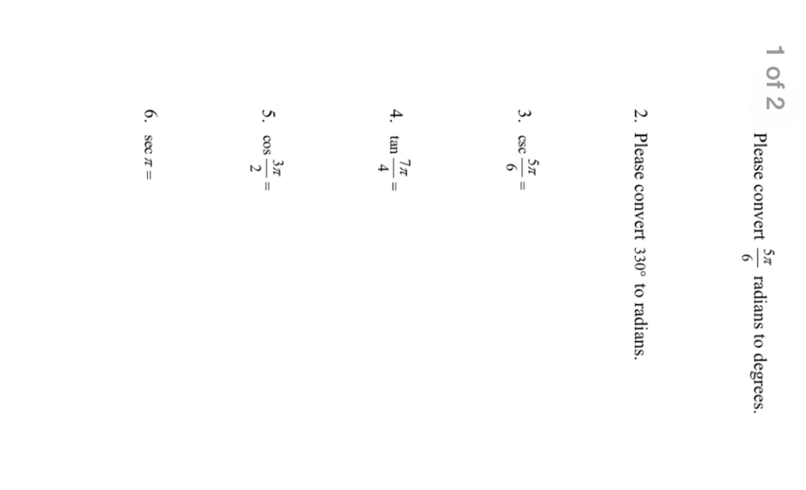 Solved Please Covert 5 Pi 6 Radians To Degrees Please Chegg Com