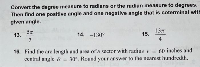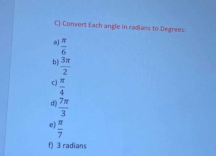 Solved C Convert Each Angle In Radians To Degrees A To 6 Chegg Com