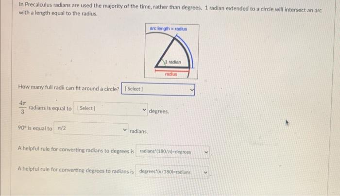 Solved In Precalculus Radians Are Used The Majority Of The Chegg Com