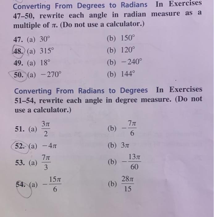 Solved Convert The Degree Measure To Radians Or The Radian Chegg Com