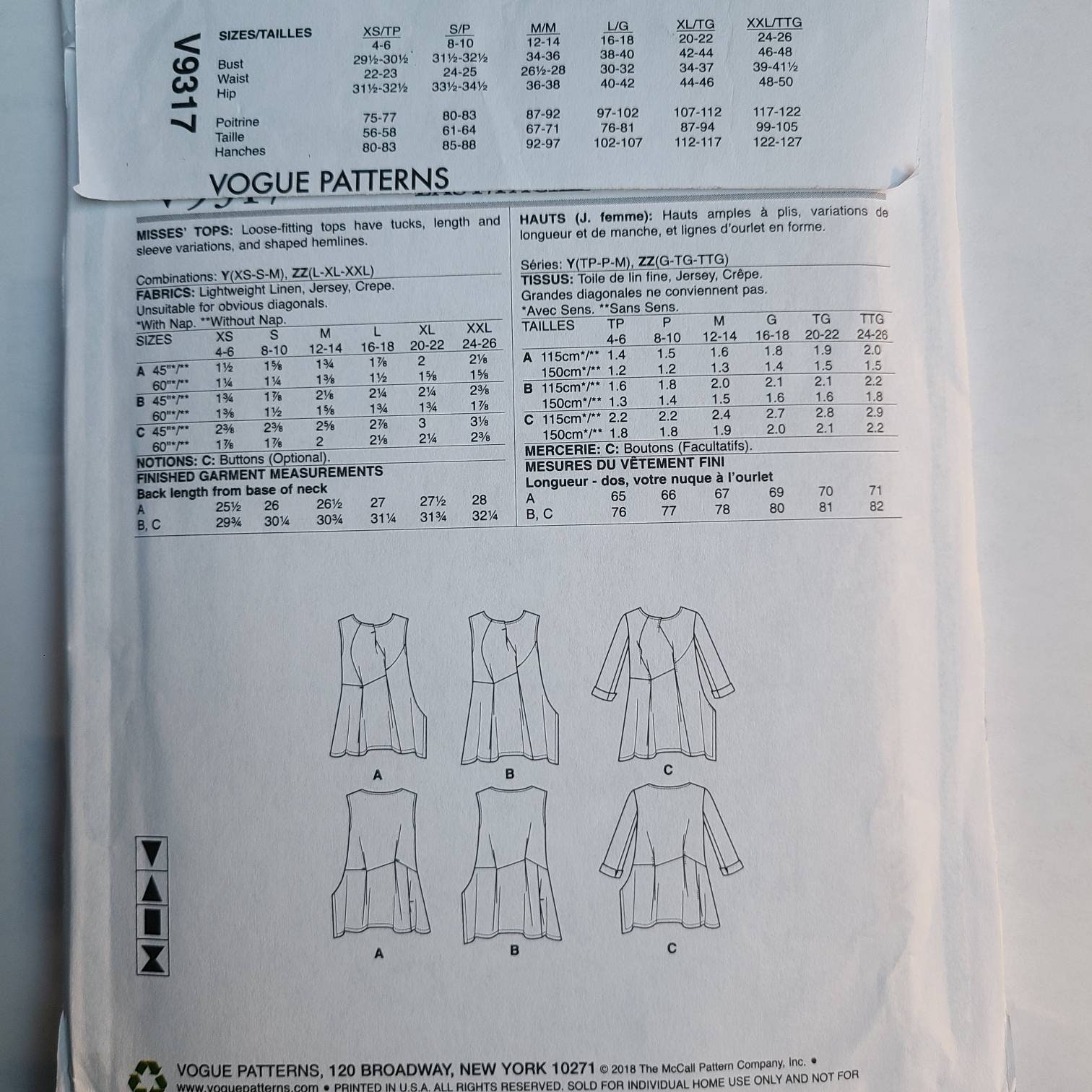 V9317 Vogue 9317 Sewing Pattern Easy Designer Marcy Tilton Etsy
